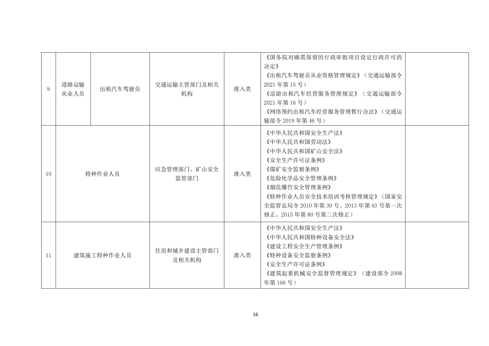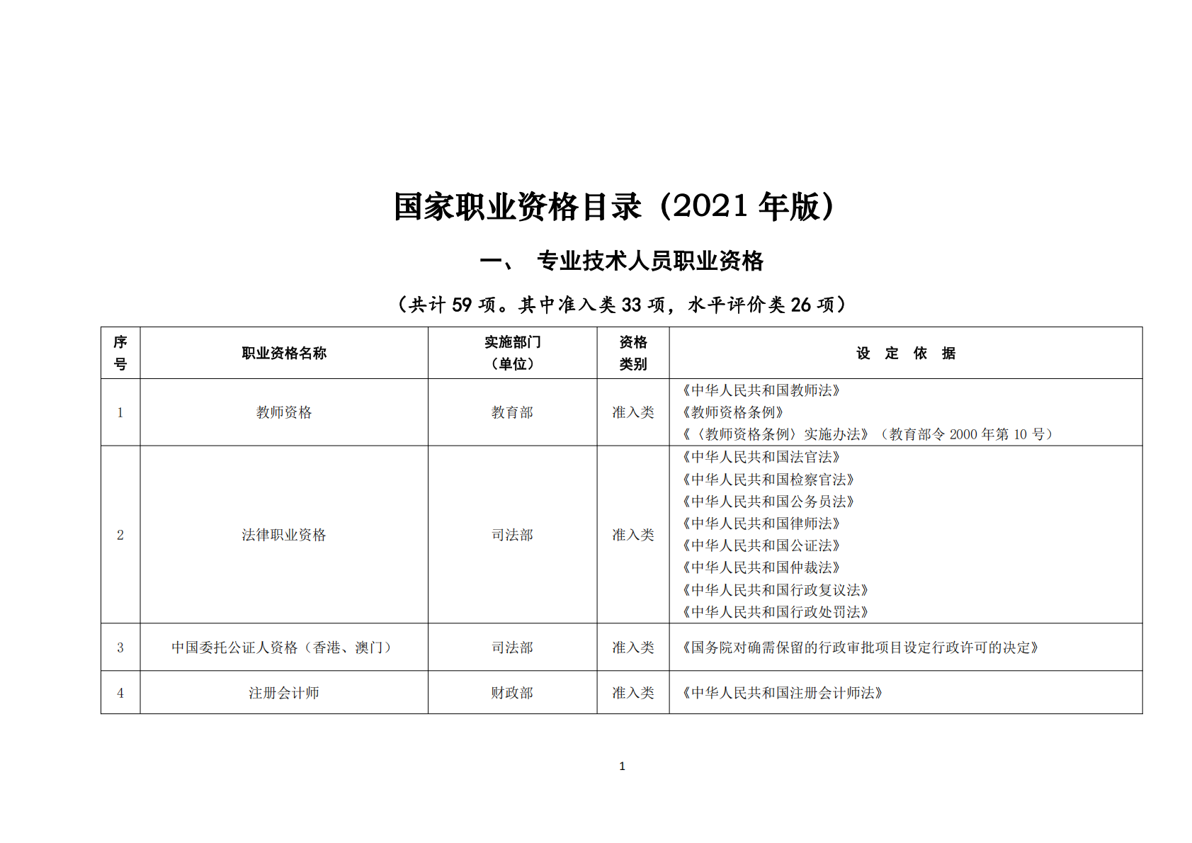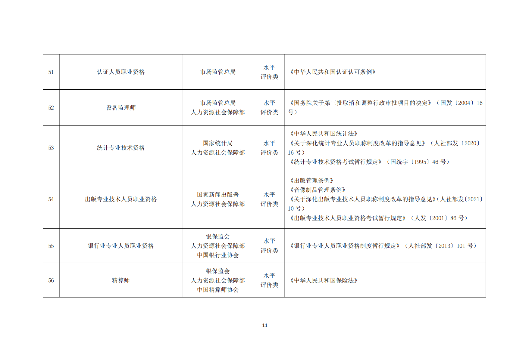 2021年版职业资格目录