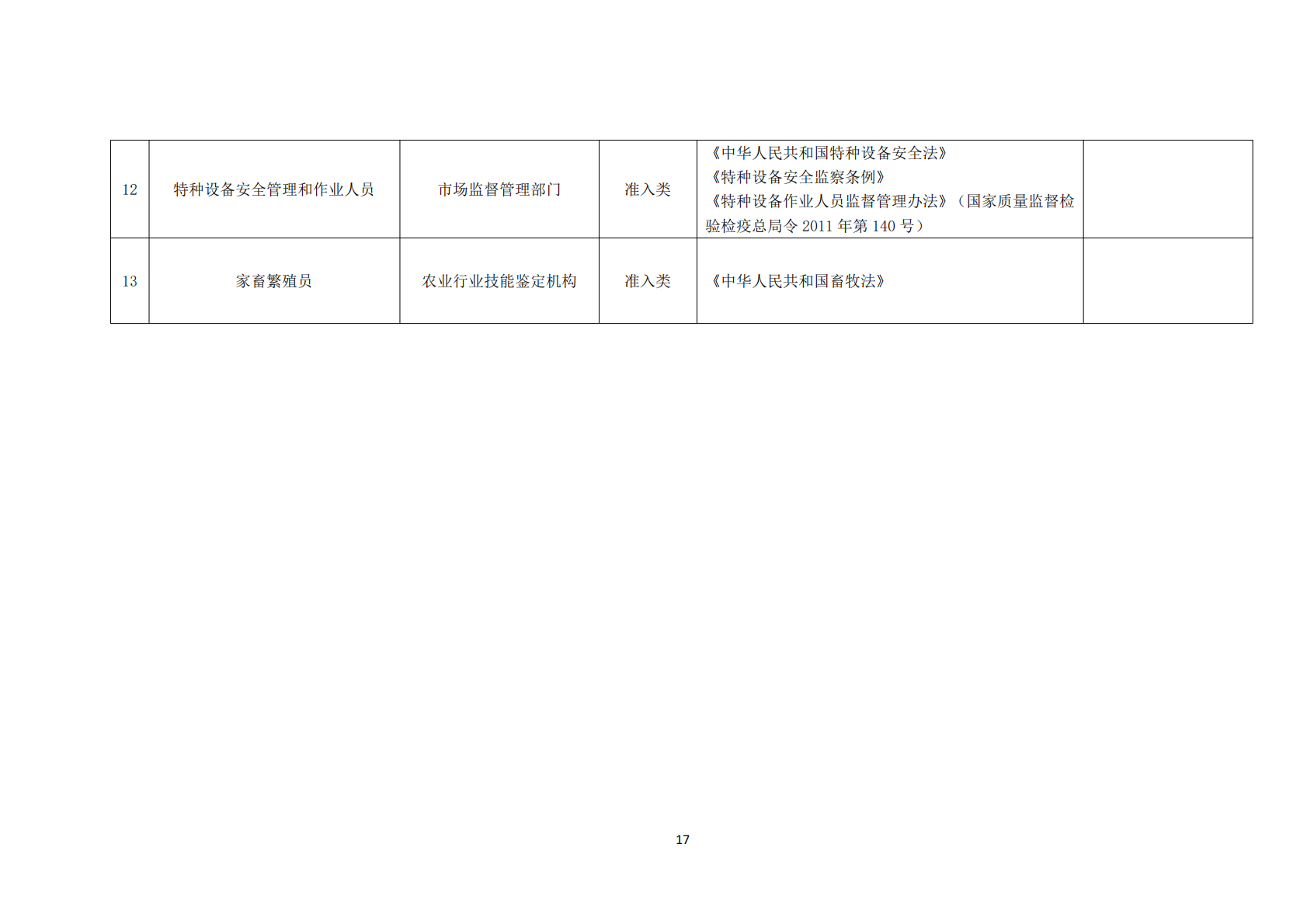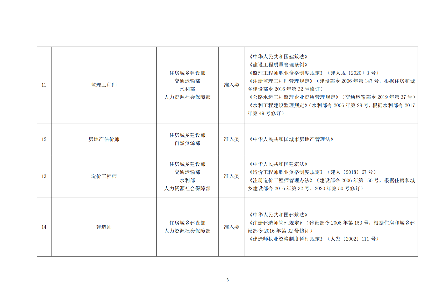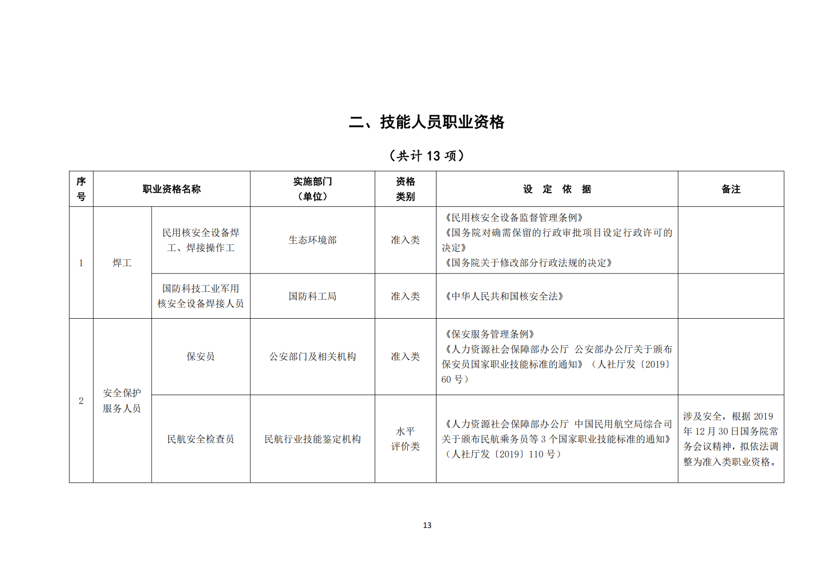 2021年版职业资格目录